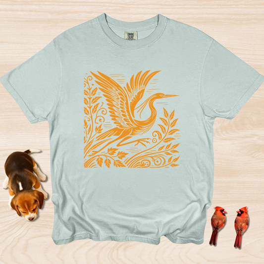 Crane Shirt, Artistic Linocut Style Wildlife
